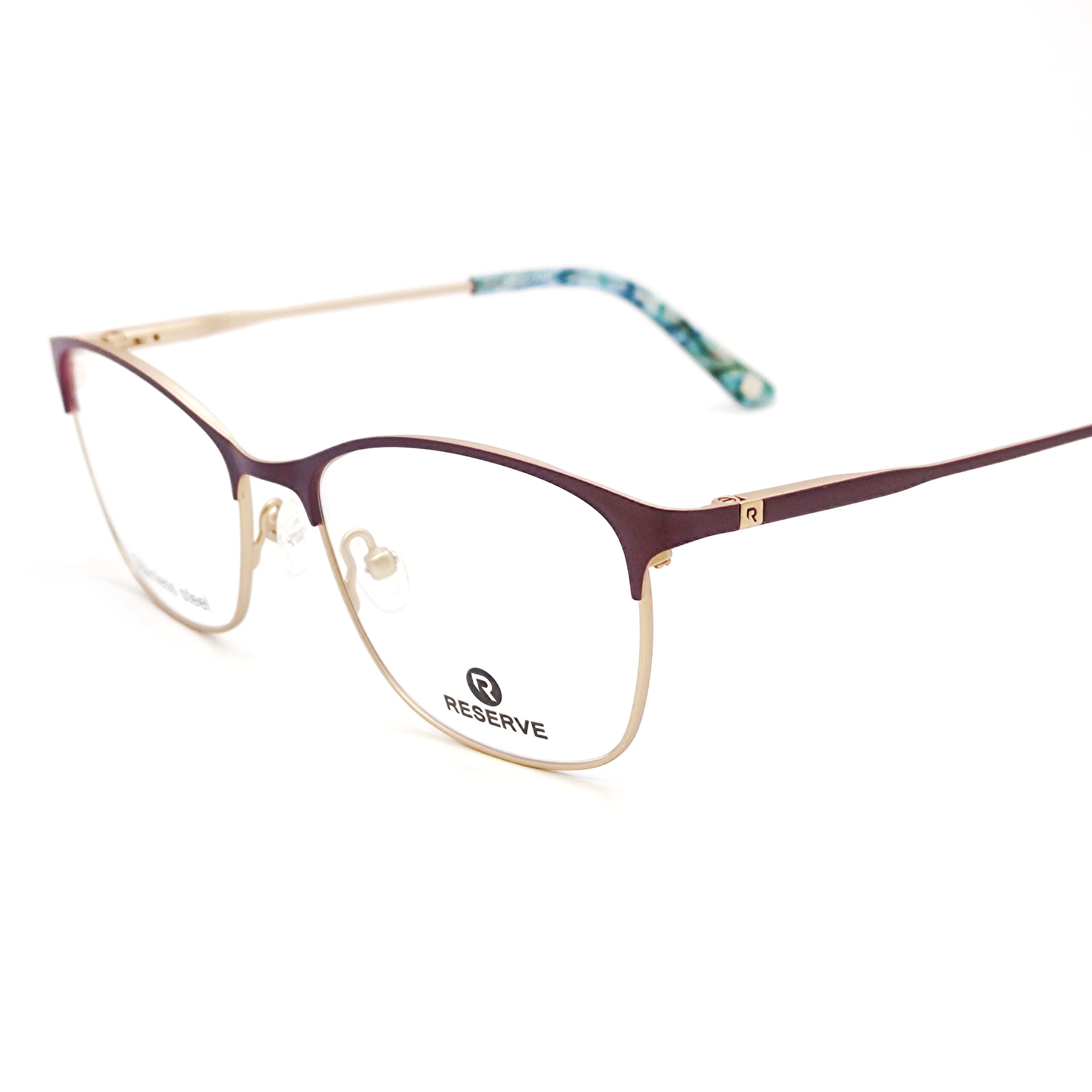 Ženski korekcijski okvir znamke Reserve, klasične oblike, navduši s kombinacijo vijolične in zlate barve.