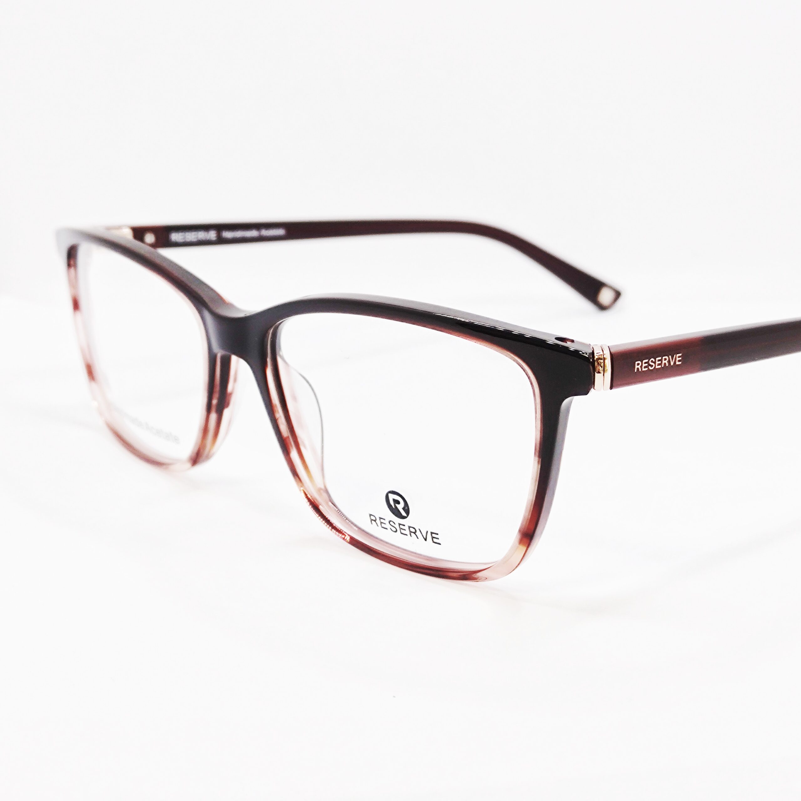 Ženski korekcijski okvir znamke Reserve. Klasične oblike in elegante bordo rdeče barve. Okvir je primeren za širše obraze.